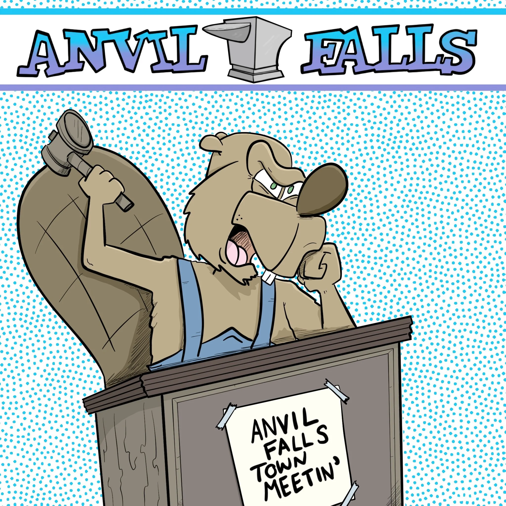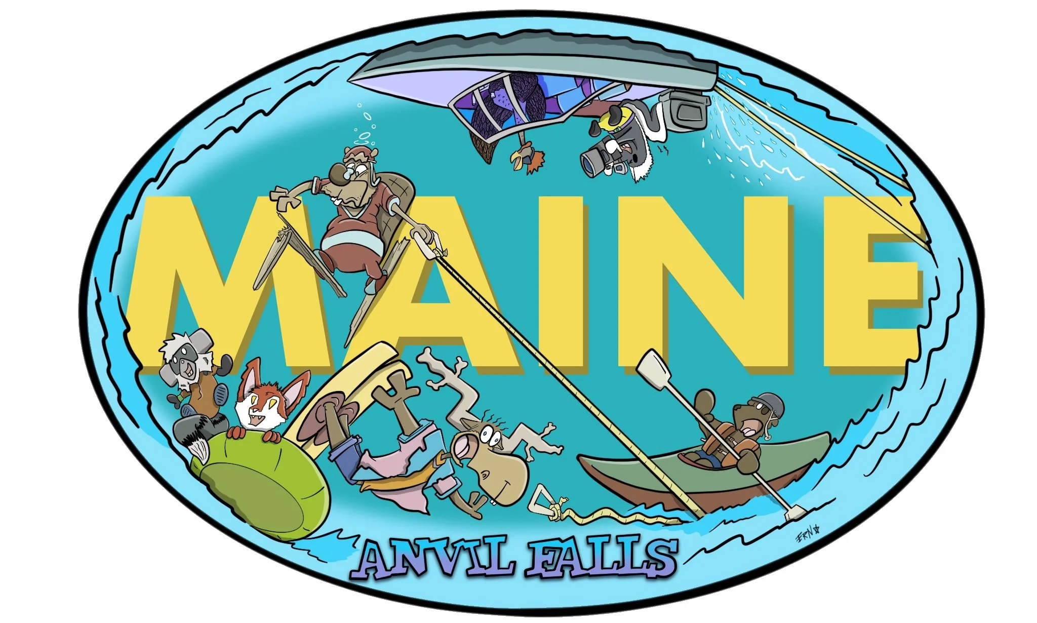 Anvil Falls celebrates life in Maine as seen through the eyes of its townsfolk: Town Manager Washburn Beaver, Transfer Station workers Prescott R. Doojobby and Louie S. Skunk, as well as Roman Moose, Jack B. Bear, Kenny Bunkporter, and Benjamin D. Foxcroft.